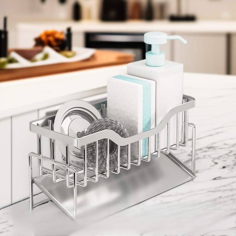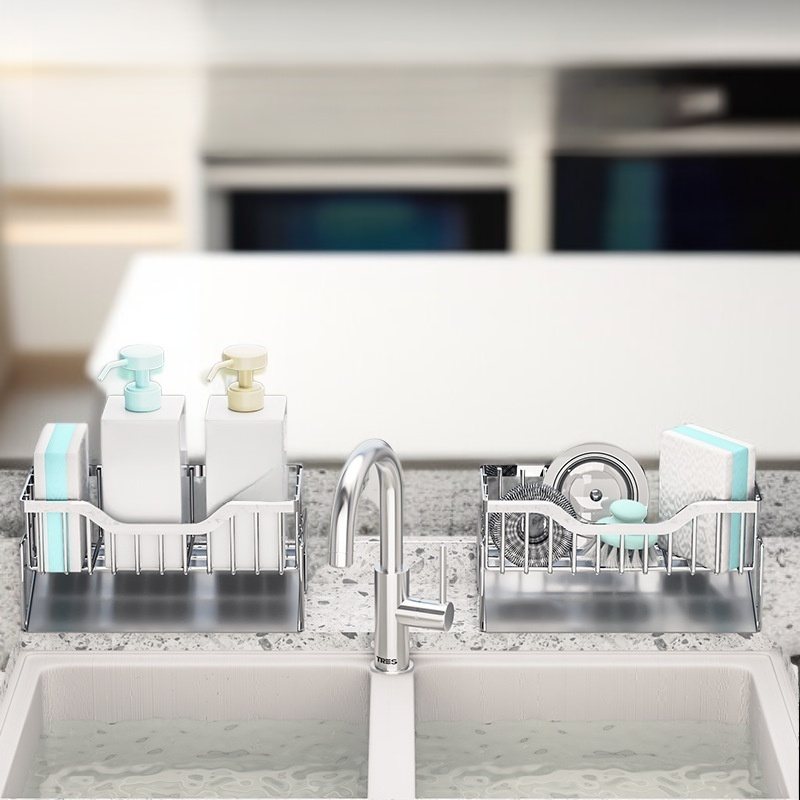 ● Diseño multifuncional que permite organizar esponjas, detergentes y utensilios de cocina, manteniendo tu fregadero siempre ordenado y eficiente.