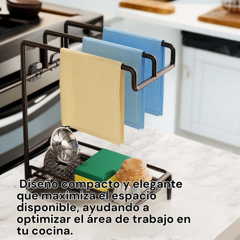 ● Fabricado en acero inoxidable de alta calidad, resistente a la corrosión y fácil de limpiar, ideal para el uso diario en la cocina. ● Diseño multifuncional con repisa de almacenamiento adicional, perfecto para mantener los utensilios, esponjas y detergente siempre organizados. ● Instalación sencilla y estructura robusta, soporta gran capacidad de carga para aprovechar al máximo el espacio sobre el fregadero. ● Estilo moderno y elegante que se adapta a cualquier decoración de cocina, aportando orden y practicidad al área de lavado.
